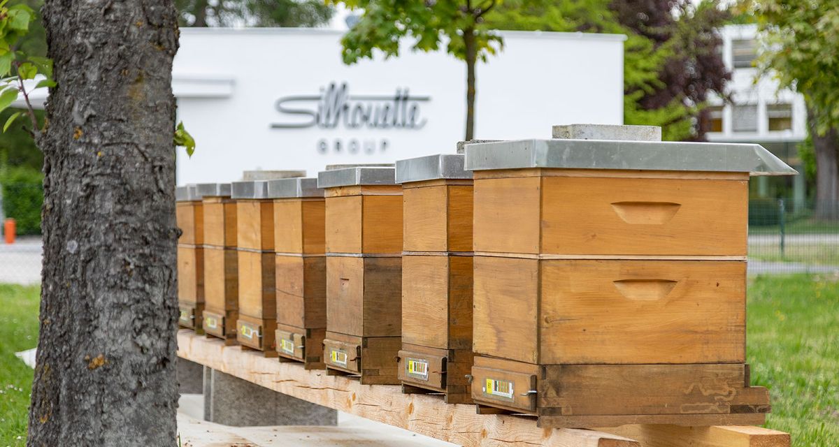 Die Silhouette Group freut sich über 200.000 neue Mitarbeitende: Honigbienen.Am 2. Mai 2023 hatten 200.000 Honigbienen ihren ersten Arbeitstag bei der Silhouette Group. Die zehn Bienenvölker sind in zehn Bienenstöcken auf der naturbelassenen Grünfläche bei der Unternehmenszentrale untergebracht.